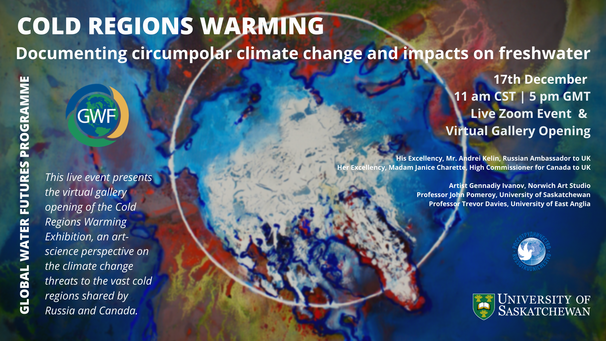 The Global Water Futures program, Canada and the Russian Culture House, UK are pleased to present a virtual gallery opening of the Cold Regions Warming Exhibition at Rossotrudnichestvo, London. A collaboration between artist Gennady Ivanov and Global Water Futures, the live event will feature remarks by Their Excellencies Mr. Andrei Kelin, Russian Ambassador to UK and Madam Janice Charette, the High Commissioner for Canada in the United Kingdom.