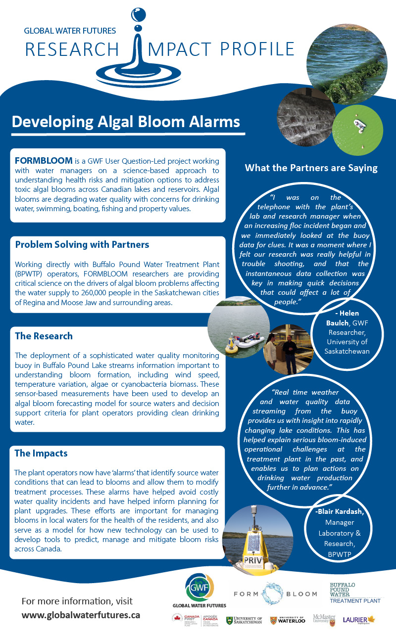 Logos: Global Water Futures, FORMBLOOM, Buffalo Pound Water Treatment Plant, Canada First Research Excellence, University of Saskatchewan, University of Waterloo, McMaster University, Wilfrid Laurier University