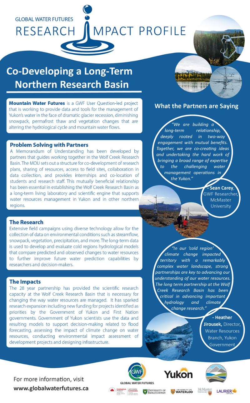 Logos: Global Water Futures, Yukon, Mountain Water Futures, Canada First Research Excellence, University of Saskatchewan, University of Waterloo, McMaster University, Wilfrid Laurier University
