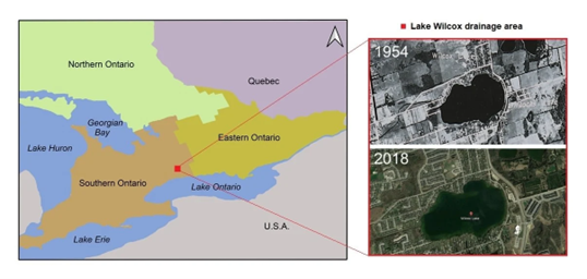 Lake Wilcox is a small kettle lake with a watershed of 2.4 km2 located in Richmond Hill, Ontario at the edge of the Toronto metropolitan area (Figure 1). The originally forested watershed has undergone significant land use changes since the early 1900s when the land was first converted to agriculture, followed by rapid urban development since the 1980s. As a result, the proportion of impervious land cover is now around 60%.